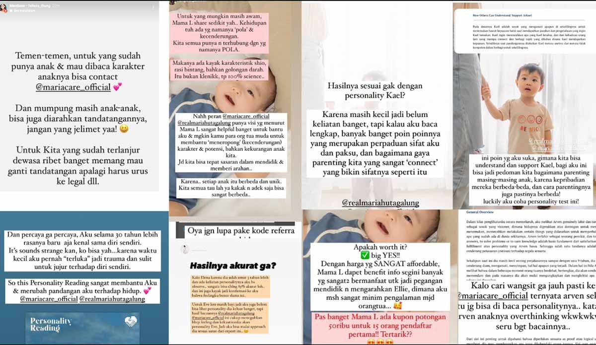 Hasil analisa di MariaCare telah melalui tahapan kurasi dengan penuh perhitungan, dan kami membagikan apa adanya seturut hasil dari informasi yang ada sehingga mohon pastikan data yang telah diinput sudah benar. Berdasarkan metode analisa personality yang telah kami kembangkan, pola dasar antara satu orang dengan yang lain sangat mungkin memiliki kesamaan oleh karena adanya kesamaan pola matrix kelahiran mereka. Dalam pembacaan hasil personality anak terkhusus, akan banyak didapati poin ataupun hasil yang menggambarkan adanya pola matrix kesamaan yang menurun dari Ayah/ Ibu/ anggota keluarga nya, atau bahkan menampilkan perbedaan personality yang sama sekali signifikan.